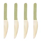 Dress My Cupcake 6.5-Inch Natural Wood Dessert Table Knives, Kiwi Green Chevron, 500-Pack