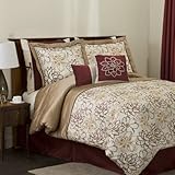 Lush Decor Florino 8-Piece Comforter Set, King, Taupe/Red